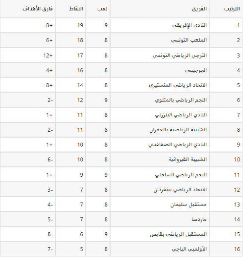 نتائج وترتيب الرابطة المحترفة الأولى التونسية بعد مباريات اليوم