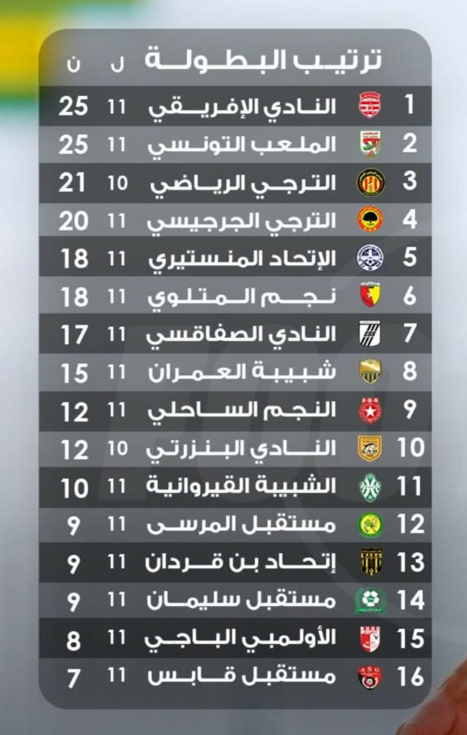 تحليل ختام الجولة يؤكد أن المنافسة على المراتب الأولى بدأت تأخذ منحى أكثر جدية مع نهاية مرحلة الذهاب، خاصة مع استعادة النجم الساحلي توازنه، وثبات أداء الملعب التونسي، بينما يُنتظر من الترجي الرياضي التونسي أن يُعلن عن نفسه بقوة في مواجهة الغد التي قد تعيد خلط الأوراق في قمة الترتيب.