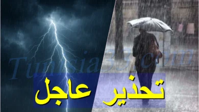 🚨 تنبيه من الأرصاد الجوية: أمطار قوية في 4 مدن تونسية خلال الساعات المقبلة